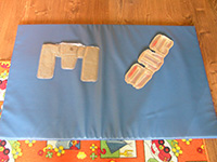 Na cvičenie sme potrebovali podložku, ktorá nie je ani mäkká, ani tvrdá. Môj šikovný manžel nám presne takú dokázal zabezpečiť.